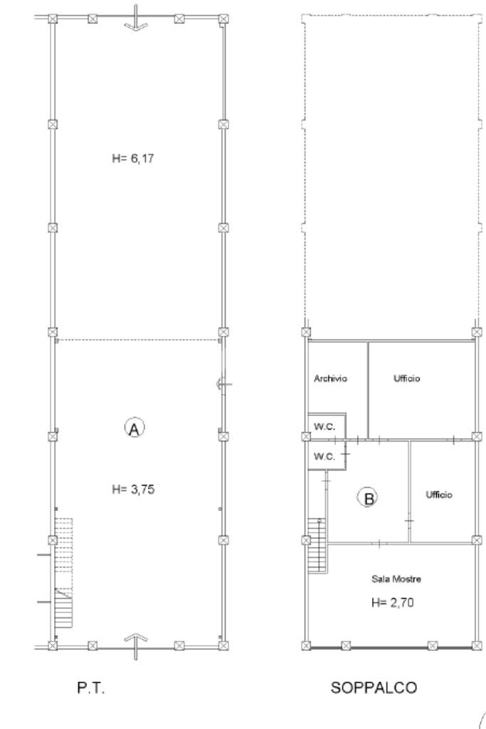 Questa porzione di capannone si sviluppa su più livelli, offrendo una struttura versatile e funzionale. Al piano terra, l'area di produzione è dotata di vari spazi ripostiglio, accessibili tramite comode scale, che garantiscono un'organizzazione efficiente degli ambienti di lavoro. La zona ufficio, situata al piano superiore, comprende tre ambienti distinti, ideali per la gestione amministrativa e operativa, accessibili tramite una scala interna. Il capannone dispone di tre uscite, facilitando l'accesso e la movimentazione delle merci.